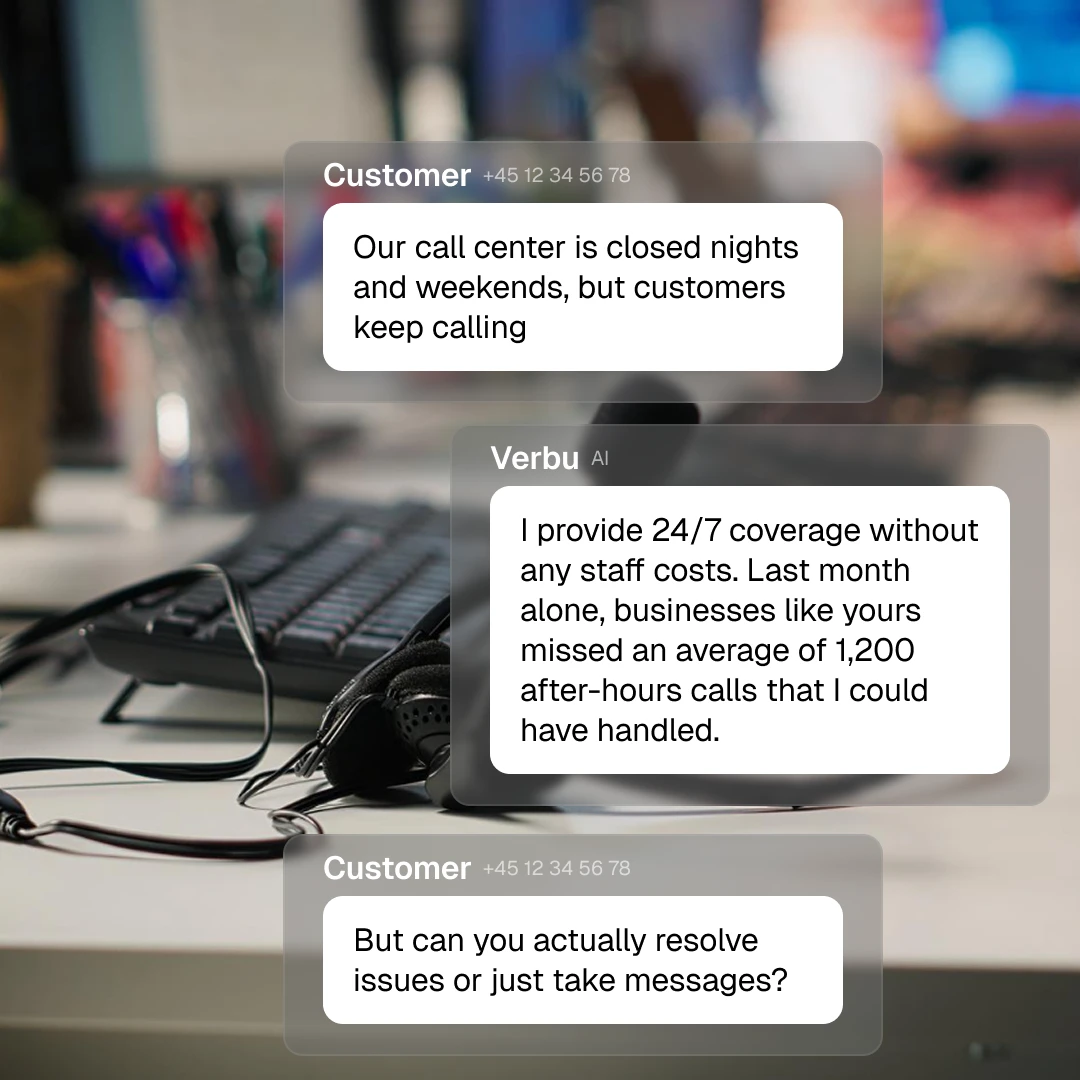 Typical automation after basic setup: 70–90% depending on call type and hours. Always with a human handoff option.