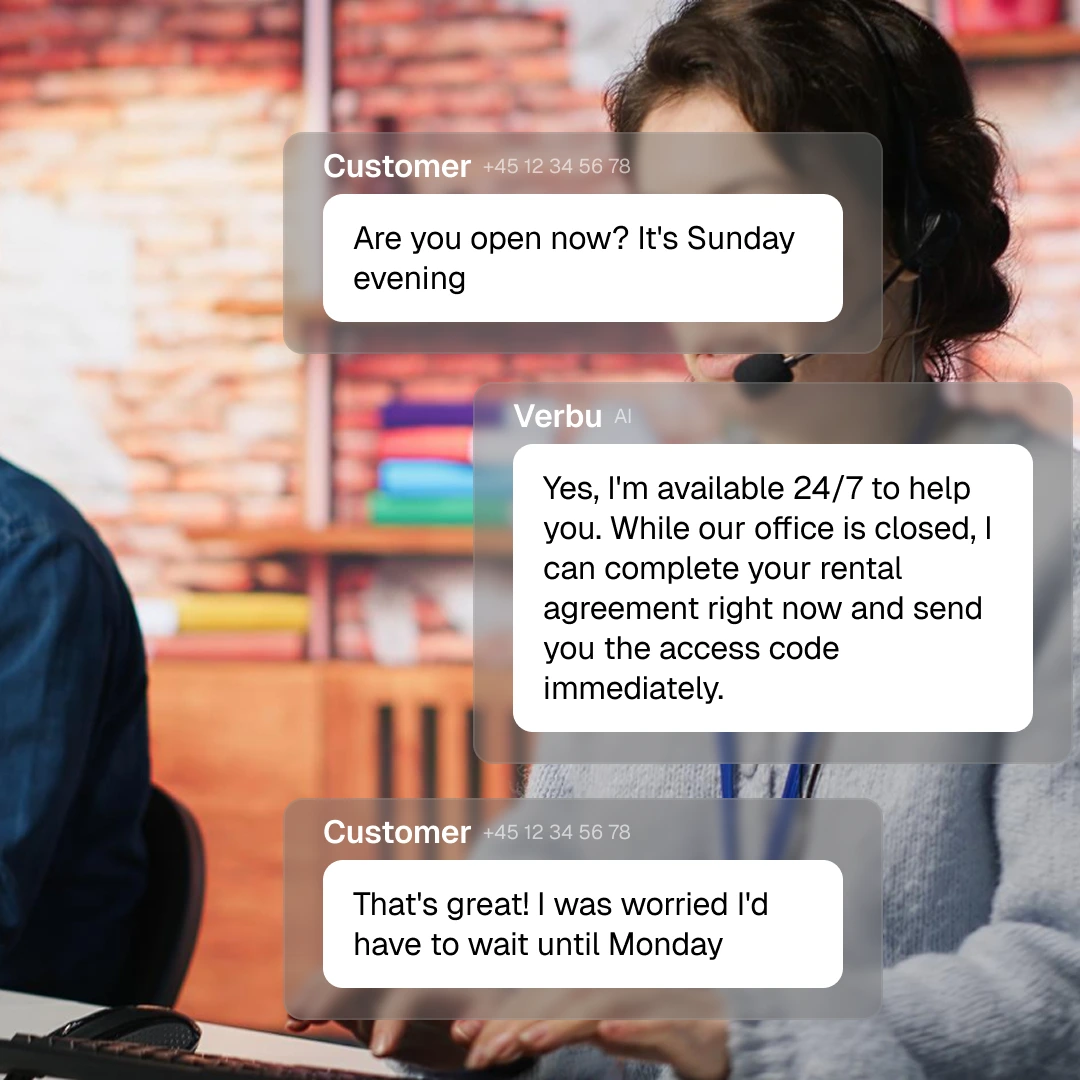 Self storage facilities lose 35% of potential rentals because customers can't reach anyone to inquire about availability during business hours. When managers are showing units or handling maintenance, missed calls mean lost rental income averaging €50-150 per month per unit.